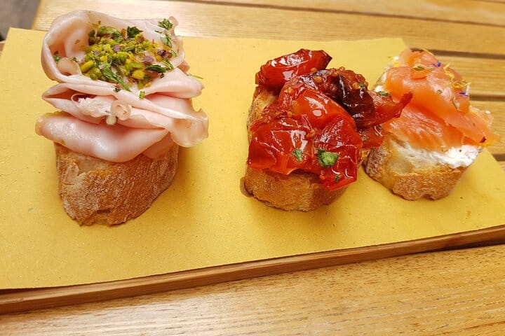 Visit three authentic "bacari" to taste "cicchetti"—traditional Venetian appetizers like cod fish or liver pâté—paired with “ombra,” a glass of wine. Learn about the social importance of these vibrant hubs where Venetians gather. Discover hidden courtyards, unique bridges, and historic buildings as your guide shares fascinating stories and secrets that reveal Venice's timeless charm. This journey blends traditional food and wine with the city's cultural heritage for an unforgettable experience.